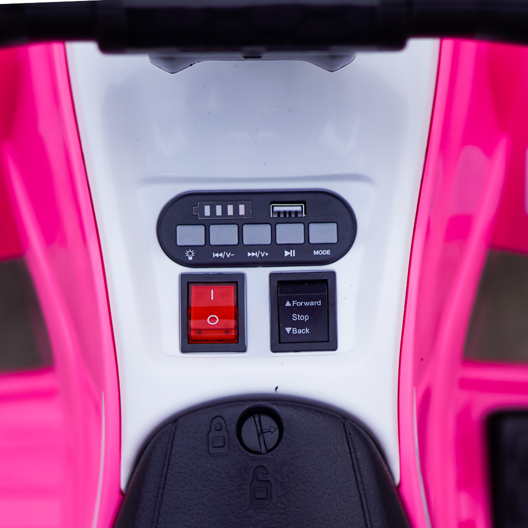 ATV electric pentru fetite, Kinderplay Raptor, 80W, 12V, roti moi, telecomanda inclusa, roz