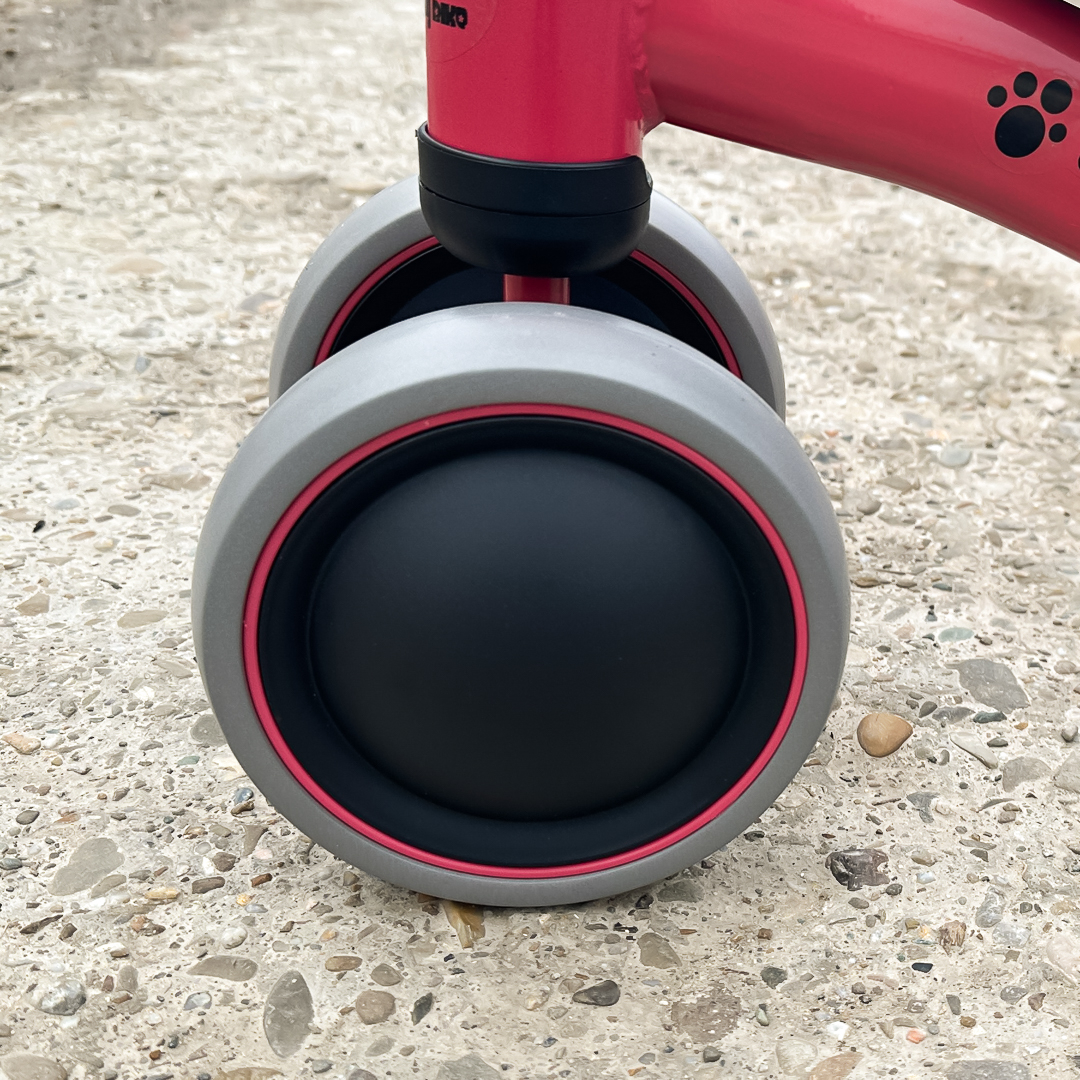 Cu un design modern, culori atrăgătoare și o construcție solidă, această bicicletă fără pedale este cadoul perfect pentru cei mici. Cele 4 roți late din cauciuc EVA asigură stabilitate excelentă și pot fi folosite atât în interior, cât și în exterior fără a zgâria podeaua.