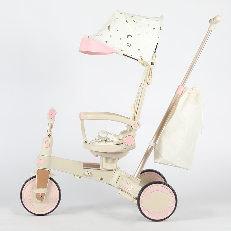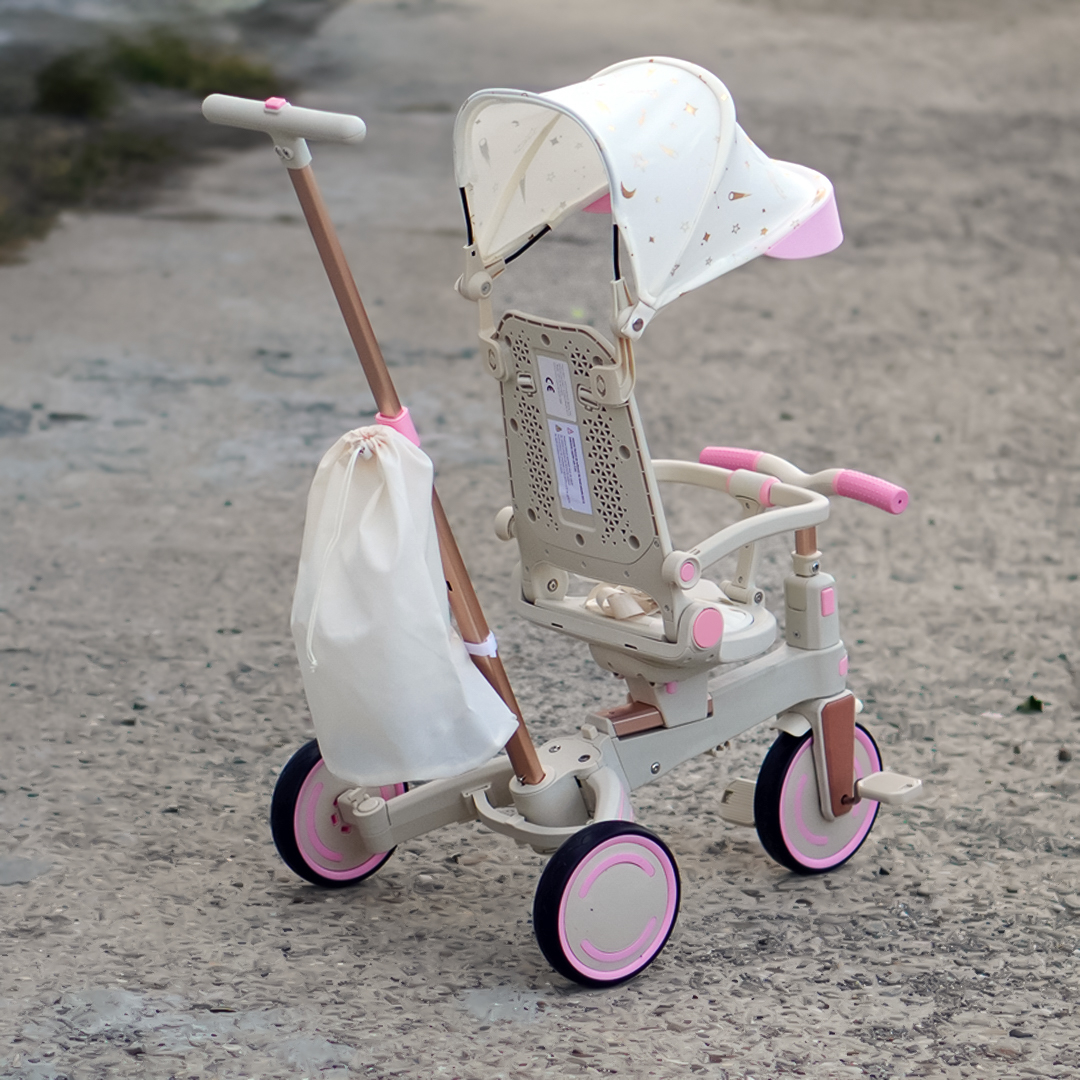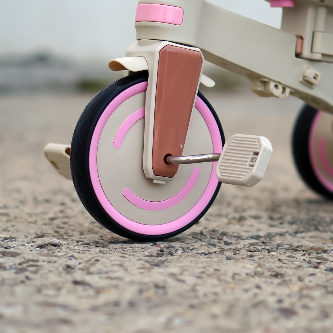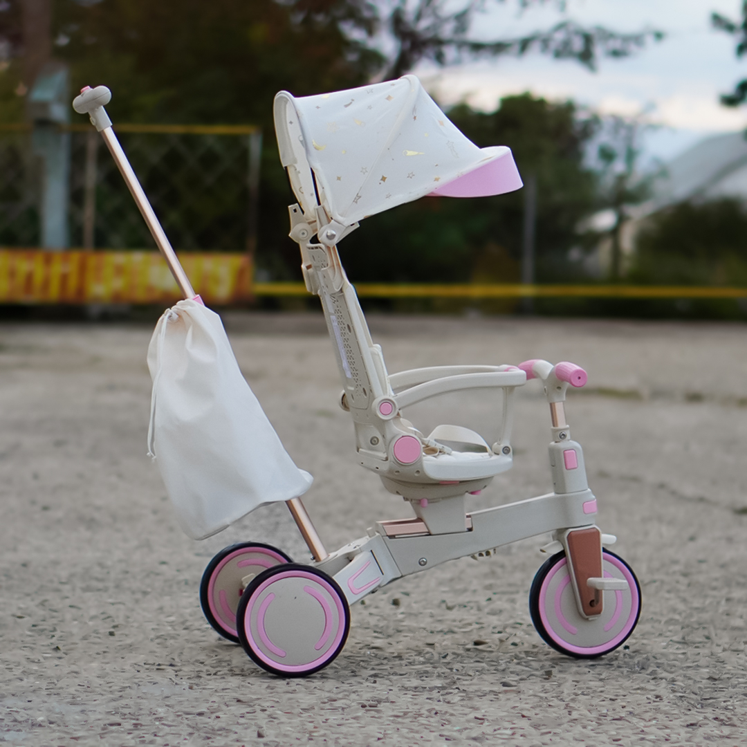 ✔️ 4-în-1 – Se transformă rapid din cărucior cu mâner parental, în tricicletă cu pedale, premergător sau bicicletă.