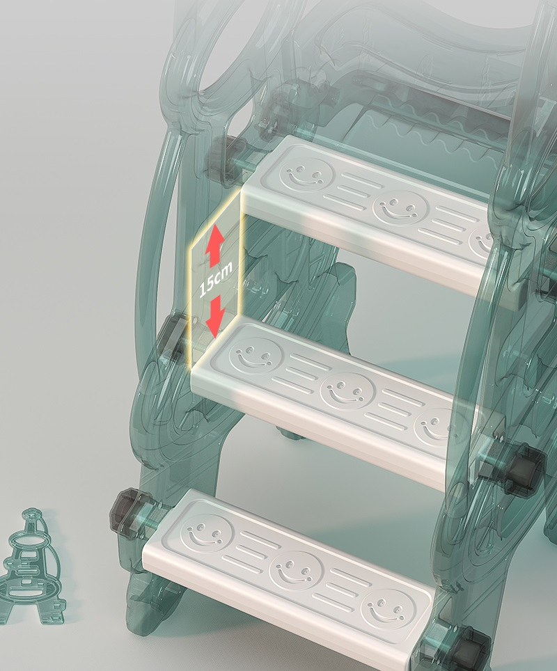 Toboganul are trepte late, antiderapante și o pantă blândă, fără coborâri bruște, pentru o alunecare sigură și confortabilă.