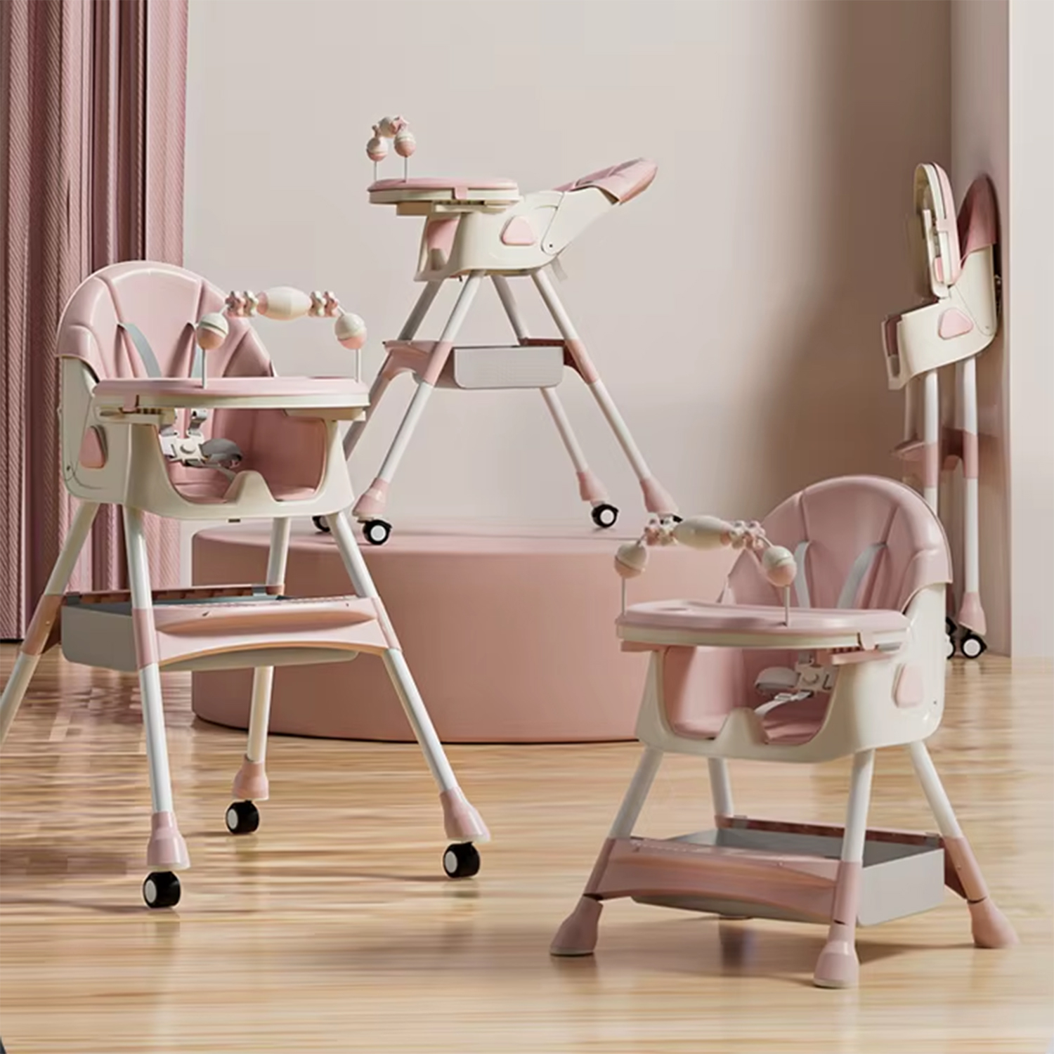 Scaun de masa si de joaca pentru copii 6–36 luni, ajustabil, inaltime reglabila, tava detasabila, centura de siguranta, roz