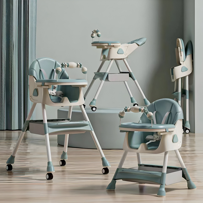 Scaunul este dotat cu roti universale cu rotatie 360°, care permit mutarea usoara dintr-un loc in altul, iar sistemul de blocare al rotilor asigura stabilitate maxima atunci cand scaunul este utilizat. De asemenea, bara frontala include jucarii integrate, care stimuleaza atentia si coordonarea copilului in timpul folosirii.